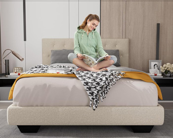 Rosevera’s Turin Upholstered Bed combines luxurious linen upholstery with a hand-tufted, adjustable headboard for personalized comfort and timeless style. Crafted with durable hardwood and foam, it promises lasting quality and easy assembly.