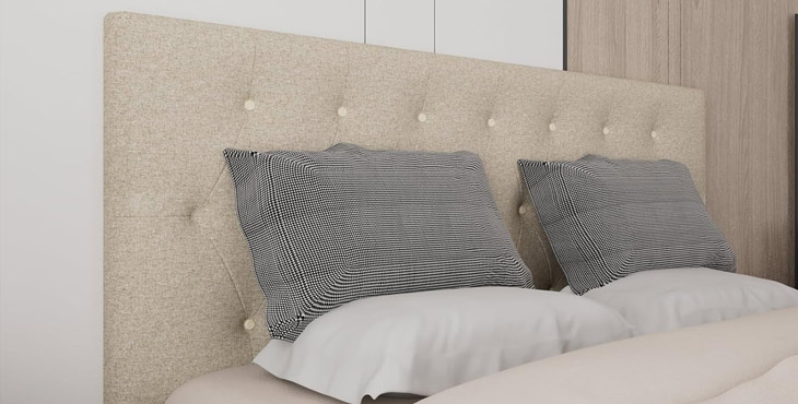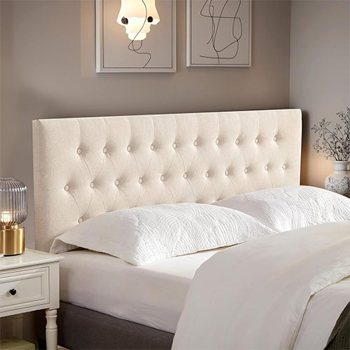Rosevera’s Darax headboard combines modern style with adjustable height and luxurious linen upholstery. Its button tufting and curved top add a refined touch to any bedroom.